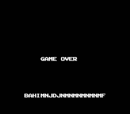 Sobre la primera opción, no hay mucho que decir, pero sí tengo unas palabras dedicadas a la segunda, Continue. La verdad es que es bastante latera la forma de continuar un juego anterior. Esto se debe a que Bomberman no tiene una pila interna que permita guardar partidas, sino que incorpora un sistema un tanto engorroso de contraseñas. Cuando uno pierde, aparece el típico y lindo Game over, pero también se nos entrega un código de veinte caracteres alfabéticos, que comprende las letras desde la A hasta la P (ver imagen de la izquierda). Es ese larguísimo código el que debemos ingresar cuando volvamos a jugar, y es una soberana lata equivocarse, pues no hay forma de borrar el error, así que simplemente hay que reingresarlo.