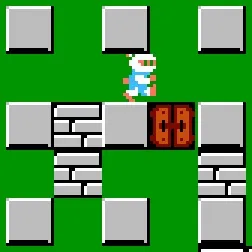 Como les decía hace un rato, la intención de Bomberman es llegar a la superficie. Para esto debe eliminar a todos los enemigos que se encuentran en cada laberinto y encontrar la puerta que lleva al siguiente nivel, todo esto solamente con la ayuda de unas bombas que él mismo fabrica y que nadie sabe cómo, ya que son tan grandes como él mismo y nunca toma materiales de ningún tipo para hacerlas. Así que para lograr nuestro cometido, con el botón A ponemos una bomba y esperamos pacientemente (y de lejos) a que explote sola, y con la cruceta movemos a Bomberman hacia las cuatro direcciones. De momento, el botón B no lo usaremos.