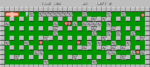 En la parte superior izquierda de la pantalla vemos el indicador del tiempo (Time) que le queda a Bomberman para pasar el nivel. Al lado de aquel indicador se ve el puntaje acumulado, y a la derecha, las vidas que le quedan (Left).