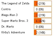 ¿Qué tal, estimados lectores? Como habrán notado, se ha cerrado la primera encuesta hecha en Mi lado Nintendo, cuya pregunta era «¿Cuál de estos [juegos] de NES tiene mejor música?». Quiero agradecer a los catorce lectores que dejaron su voto en este sondeo, y también animar a los demás que no lo hicieron a que participen en el siguiente. Los resultados, así como los juegos participantes, están en la imagen de junto.